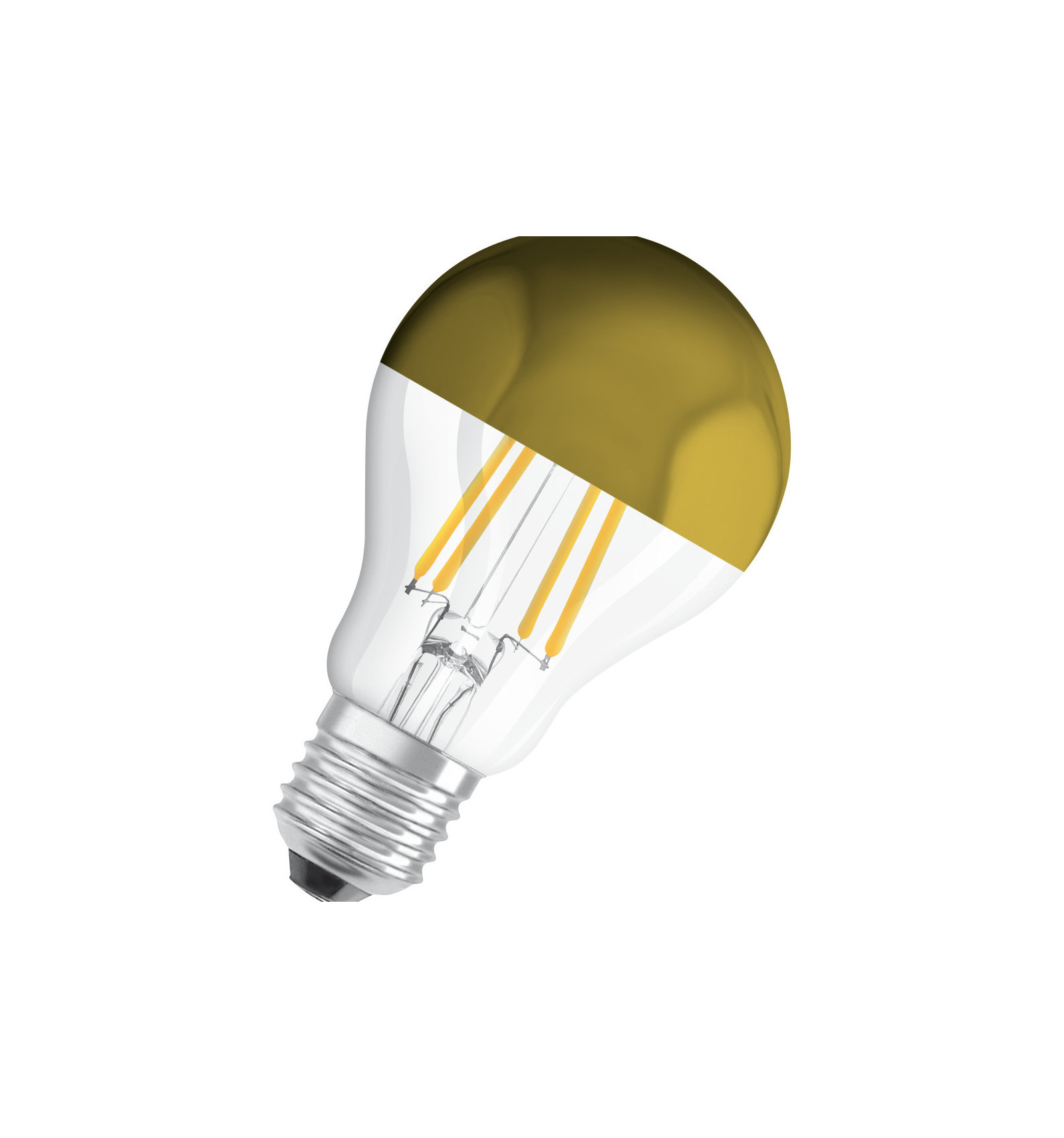 Lampy LED w kształcie klasycznej żarówki ze zwierciadłem w koronie bańki.